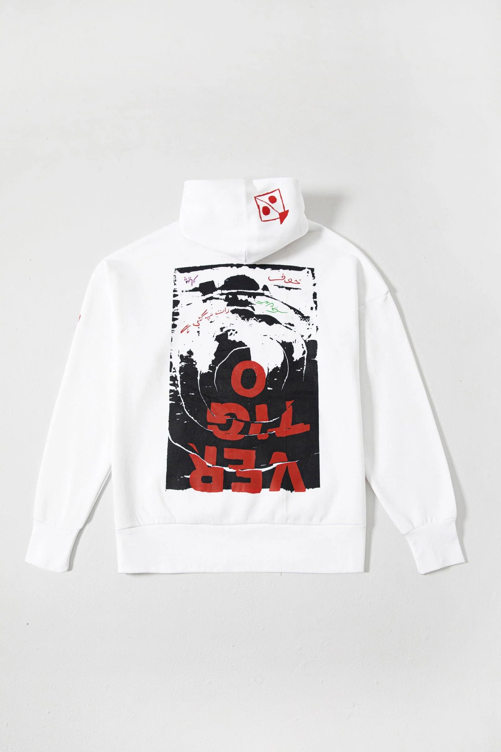 "A-POLITICAL" HAND PRINTED WHITE HOODIE