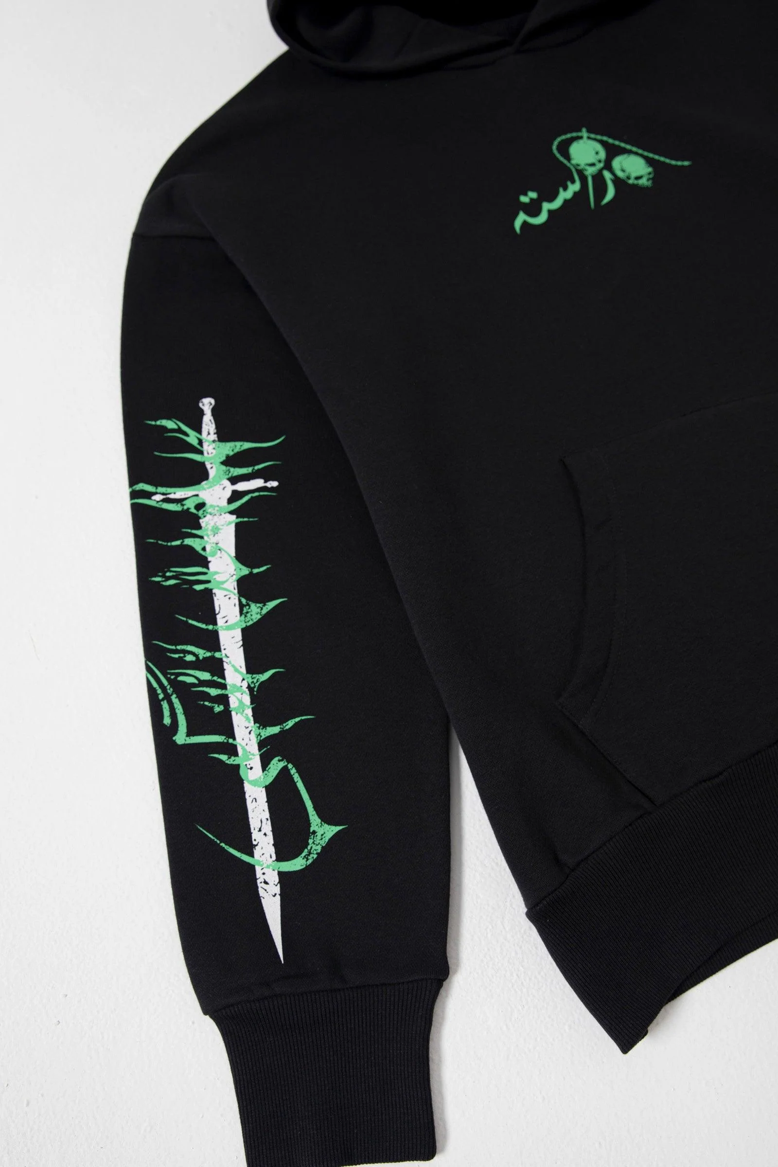 A collaboration with underground graphic designer Hanif Niazi. The artist has incorporated his unique psychedelic and dystopian style to this heavyweight oversized hoodie.