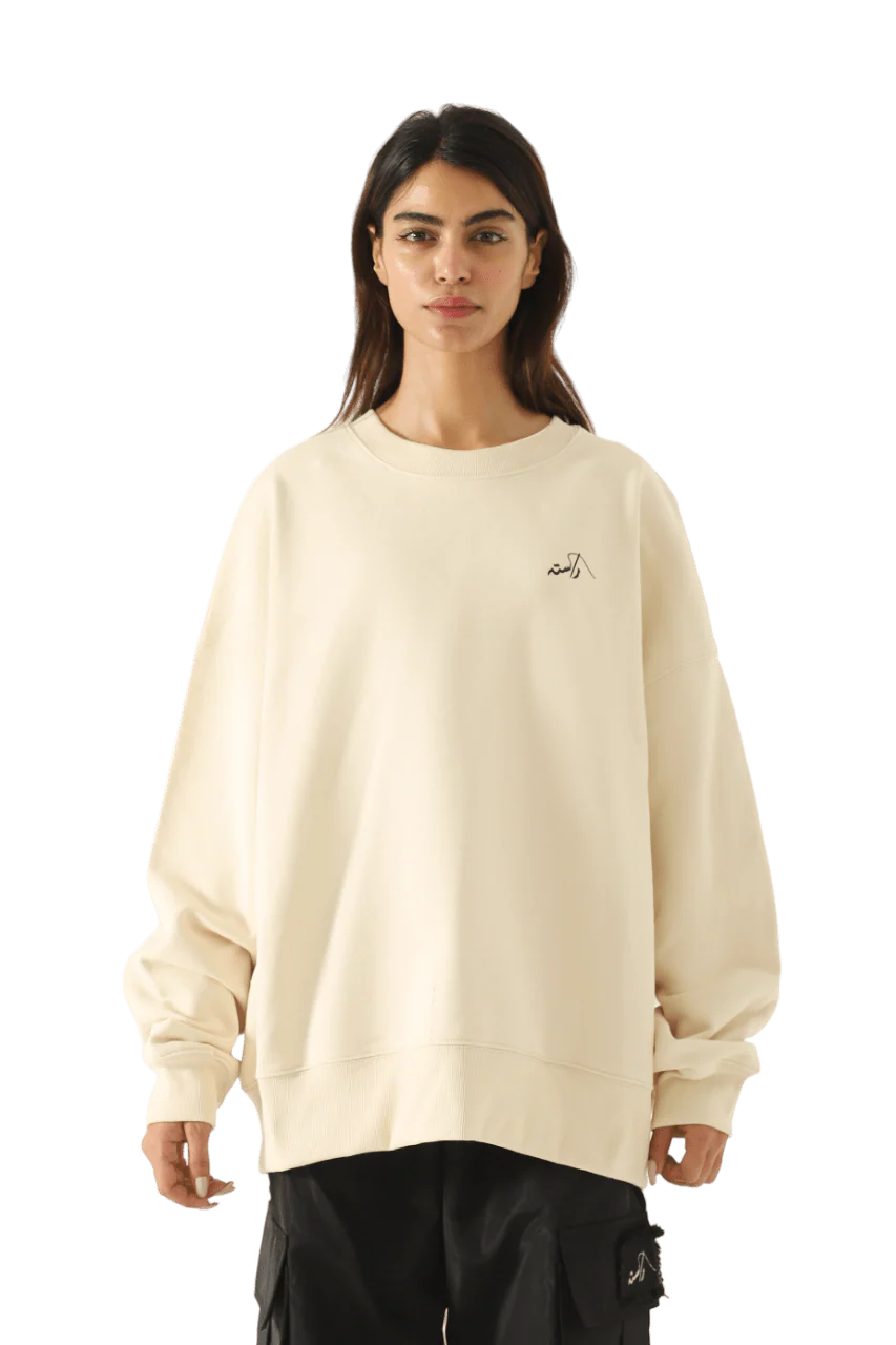The Beige Rastah Logo Sweatshirt captures a minimalist style, with just the Urdu Rastah logo puff printed on the front, and the iconic rastah english logo and "Made in Pakistan" on the back. Composed of 100% cotton blend, its 420 GSM weight delivers an oversized, relaxed silhouette.