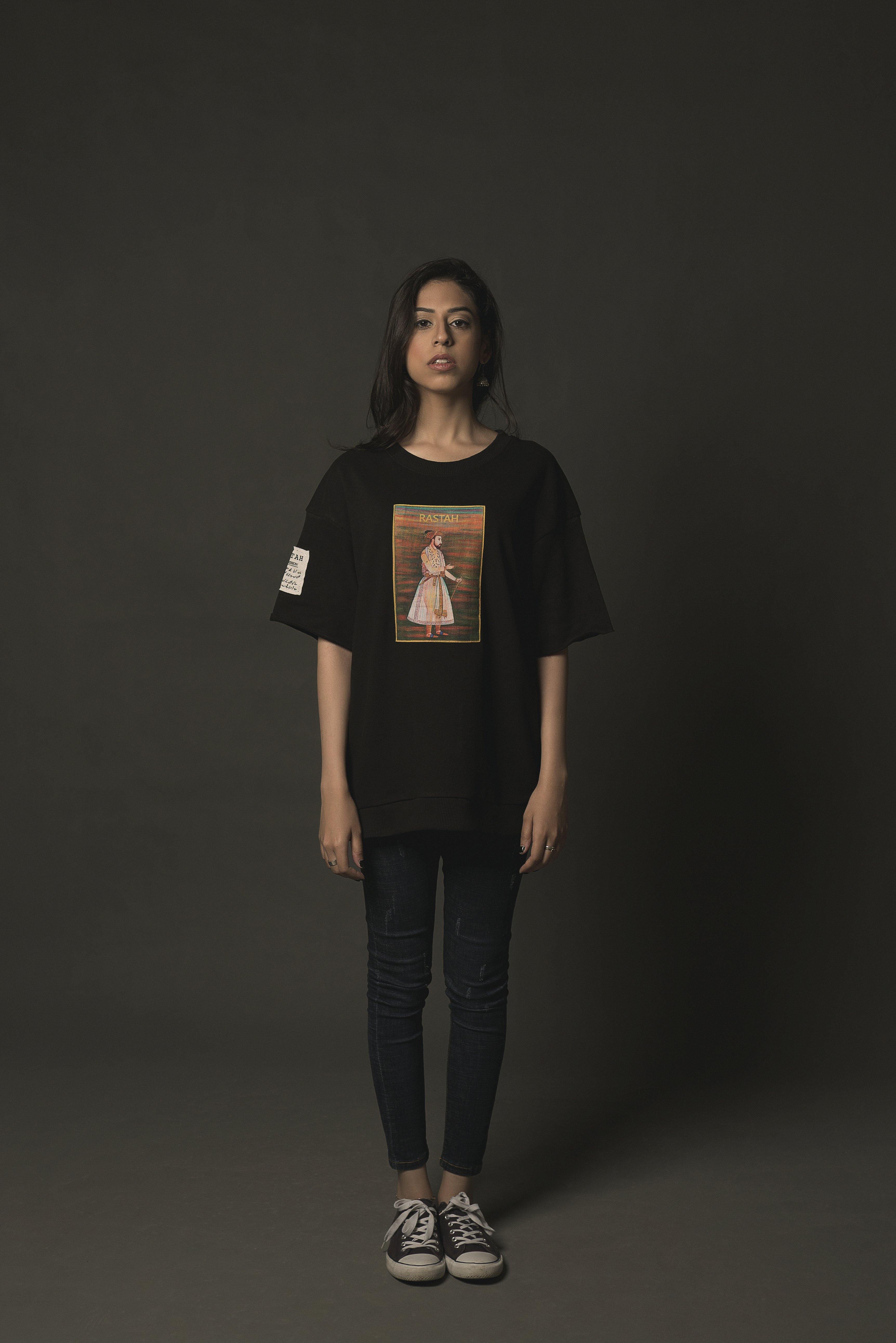Hand Crafted Unisex Black Mughal Emperor T-Shirt (Cropped Fit)