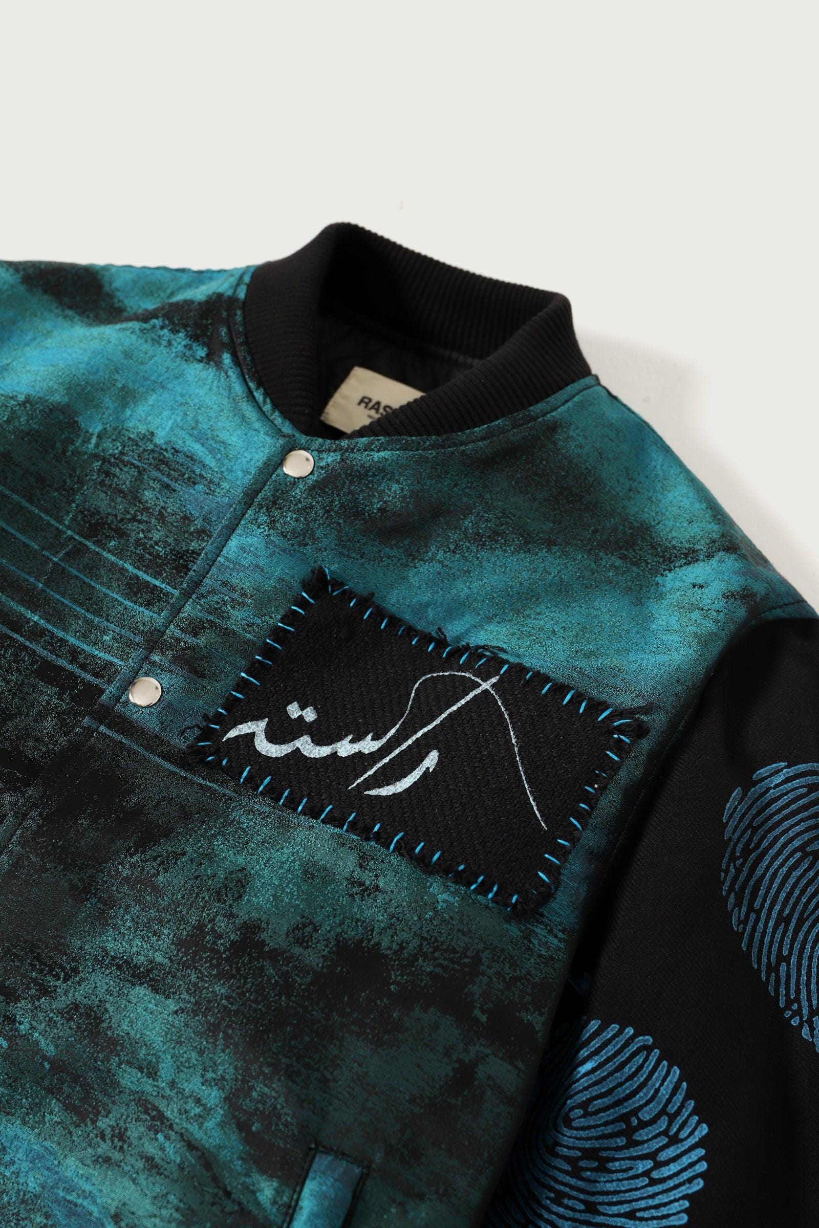 "WHO AM I" HAND BLOCK PRINTED SILK BOMBER