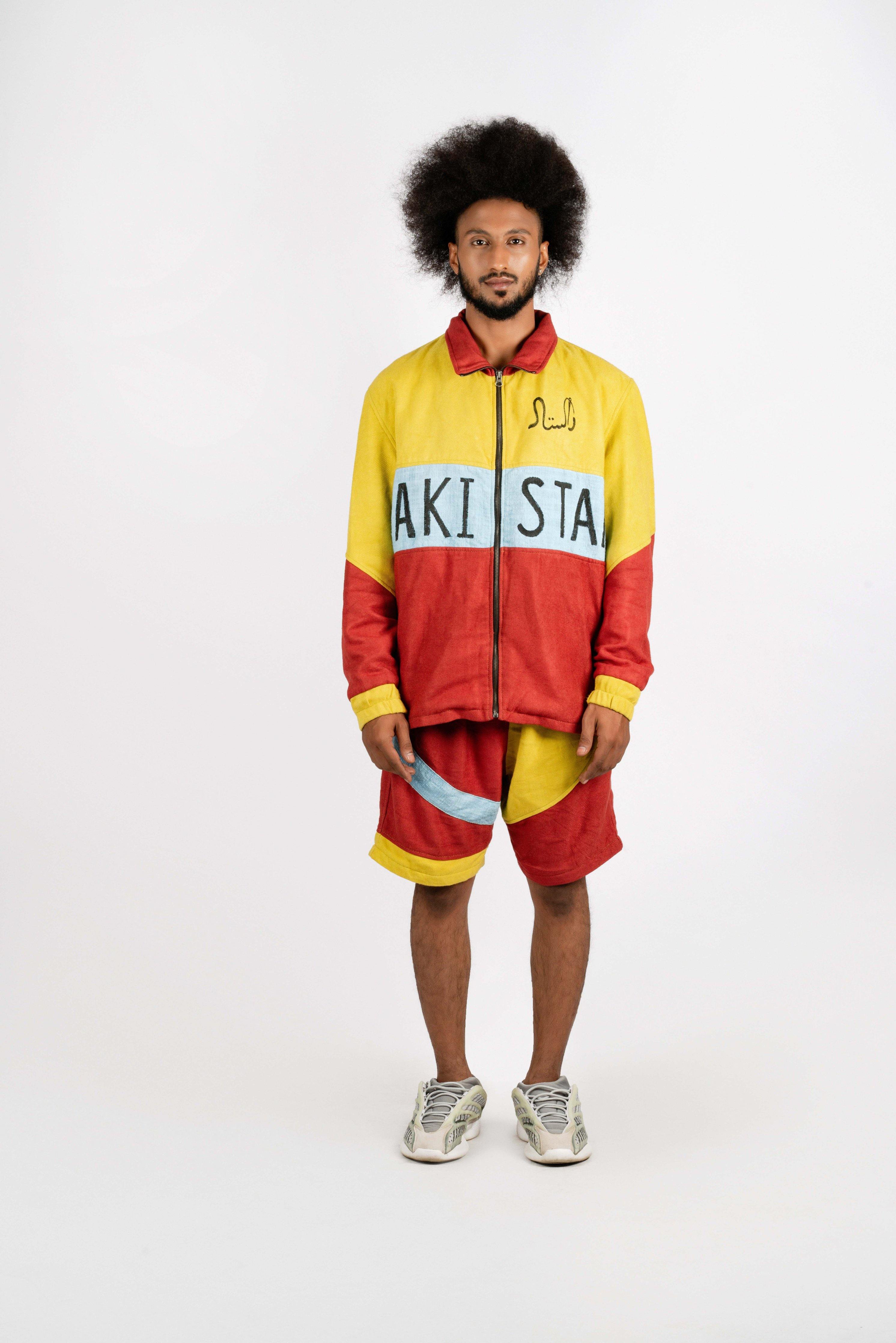 The garment is entirely constructed from handwoven twill using high quality recycled staple yarn.
